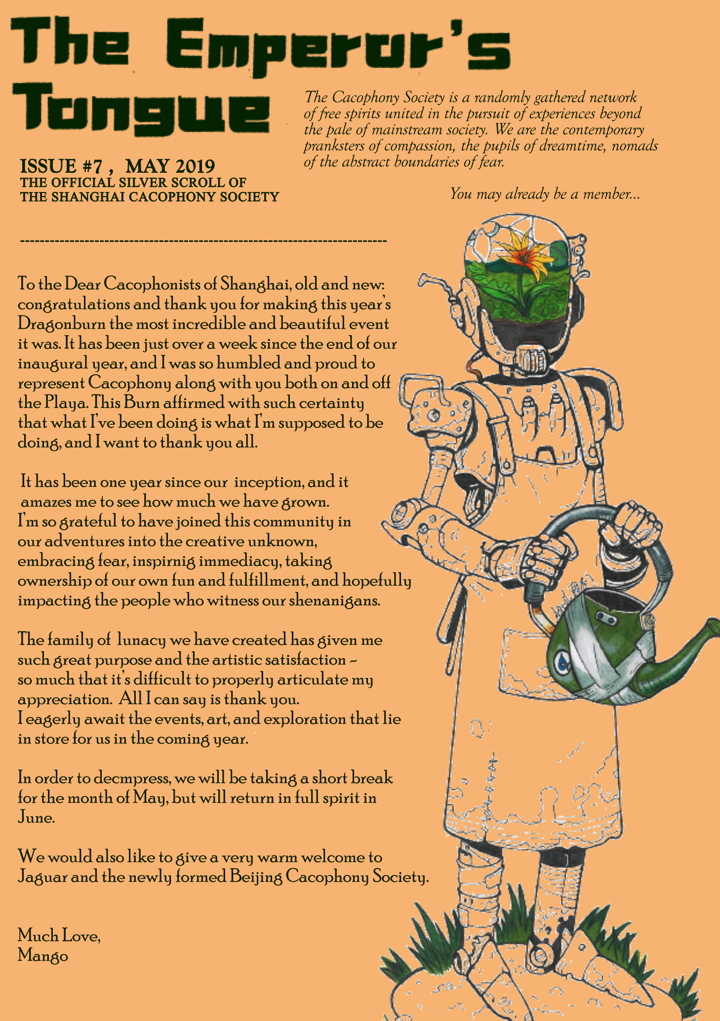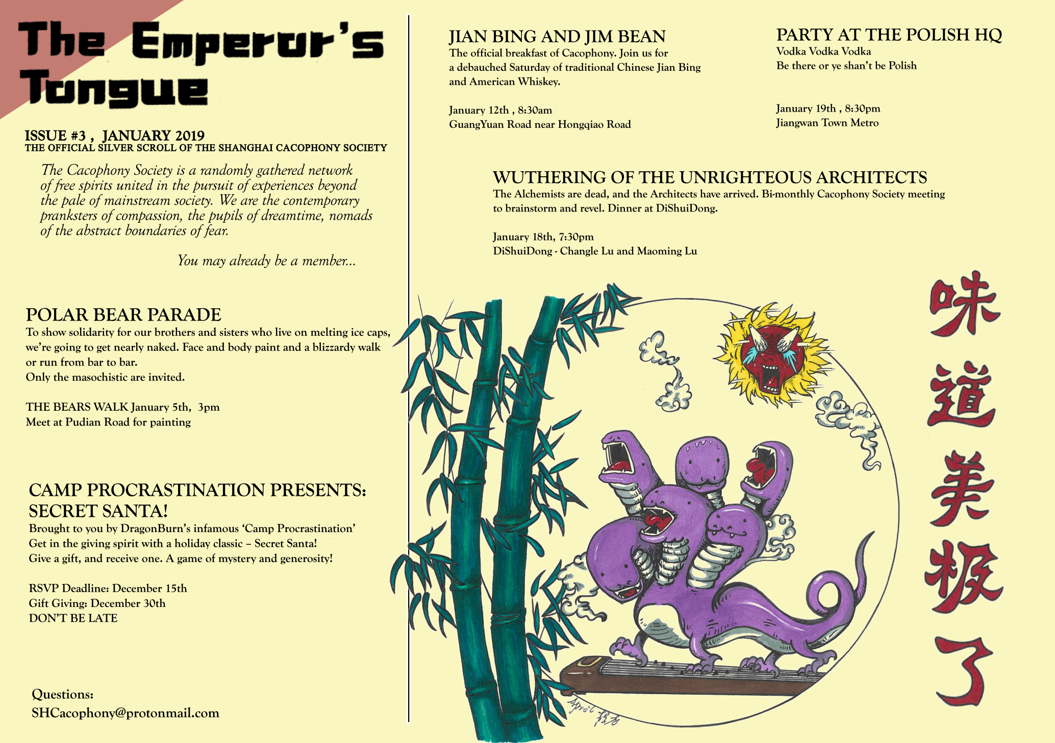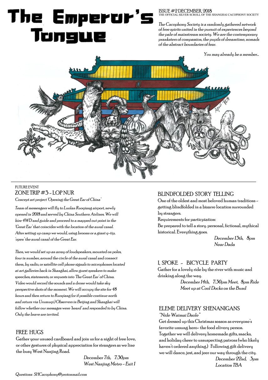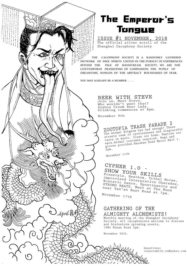 Emperor's Tongue serves as the voice of the Shanghai Cacophony Society, documenting our adventures, announcing upcoming events, and preserving the spirit of playful resistance that defines our chapter.